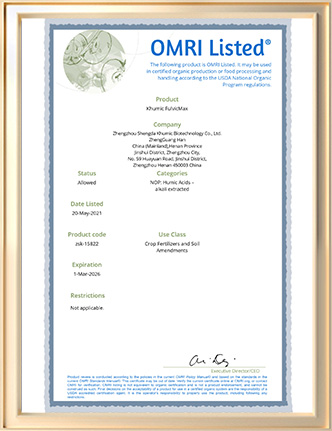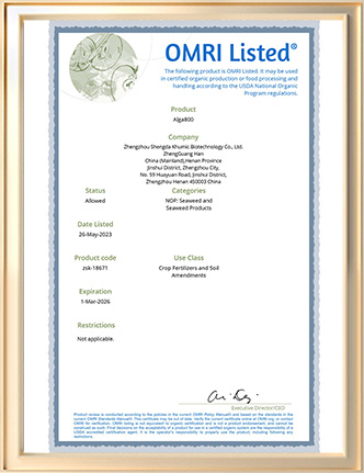Certificado orgánico OMRI